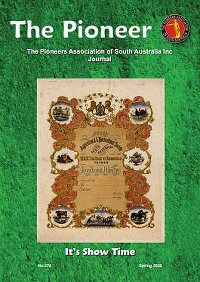 The Pioneers SA Journal is issued quarterly and is our way of keeping in touch with members all over the world. The Association was inaugurated in 1935 and there has always been a continuing membership of several hundred, not all of whom live in metropolitan Adelaide. We now boast approximately 700 subscribers, some of whom are interstate and some that are overseas. A good proportion live in rural and remote areas throughout the country. For the most part articles concentrate on the time span between the late 1820's up until the middle 1840's. This provides our readership with some understanding as to why their forebears came to Australia and how the process of systematic colonization, as proposed by Edward Gibbon Wakefield, led to their emigration. Equally interesting are the trials and tribulations of settling a new country that many endured, sometimes with limited resources. Sometimes we are treated to anecdotal information of a personal nature that is both comforting and edifying. We are continually surprised by the new material which surfaces from time to time and members are indebted to those families who have kept such good records and who are now prepared to share them with others. The Journal is for all members and we invite contributions that are consistent with the Association's aims and objectives. If you wish to submit items for publication, either post to Pioneers SA, Level 2, Stafford House, 25 Leigh Street, Adelaide, or email to publications@pioneerssa.org.au. The Journal is available to libraries and to the public at a modest cost of $5.00 plus postage.